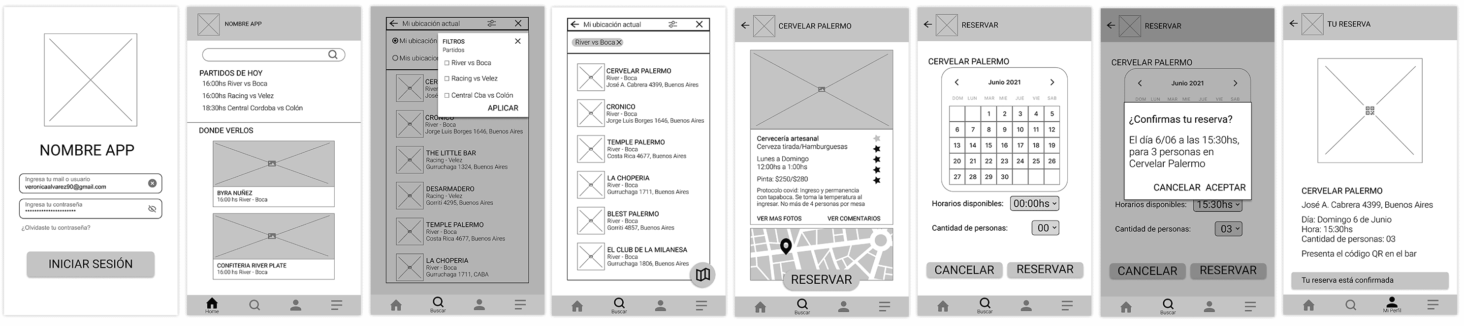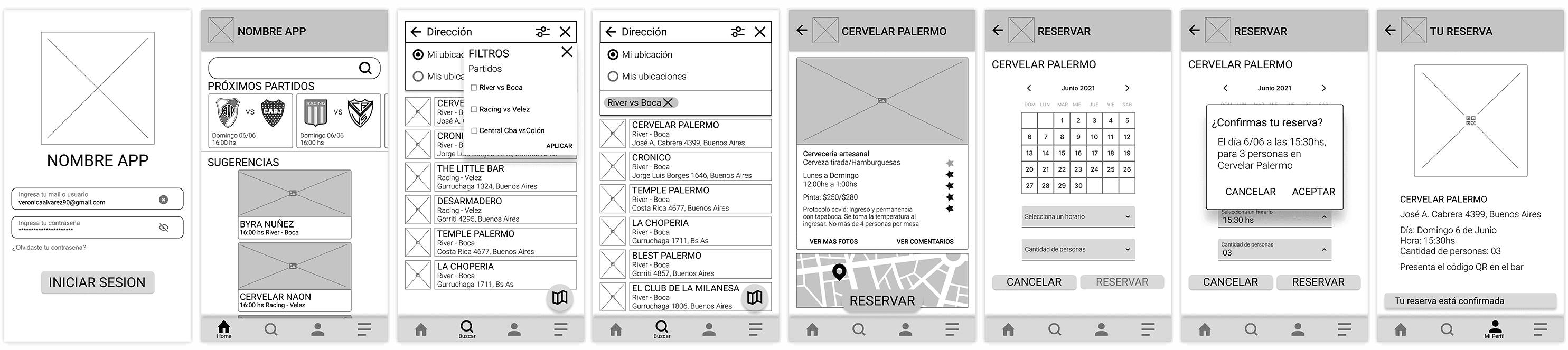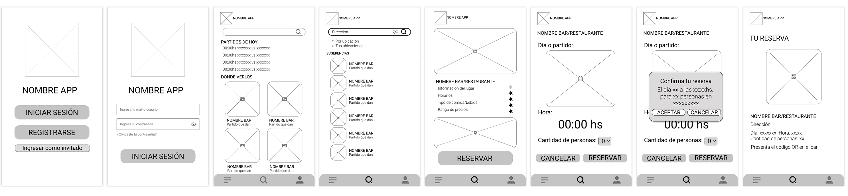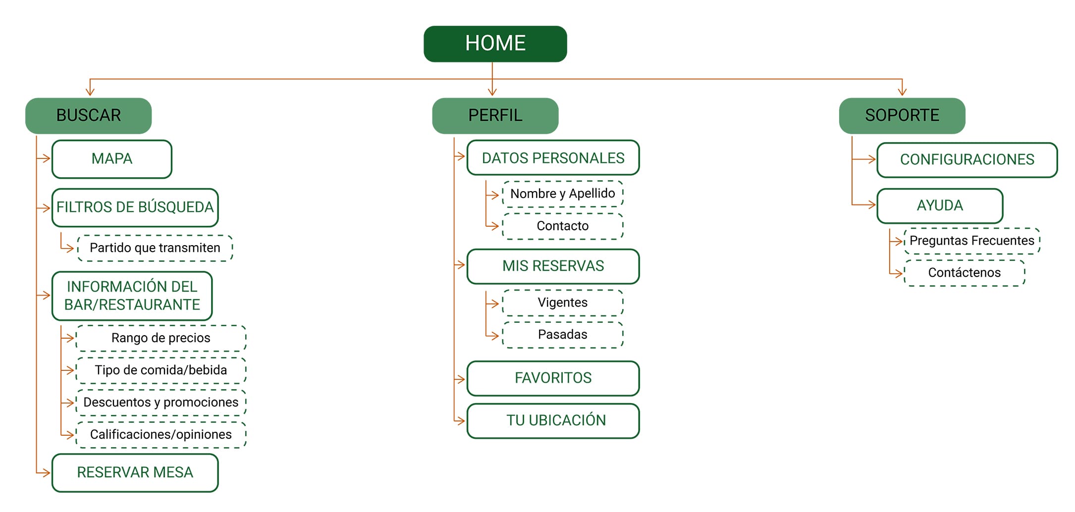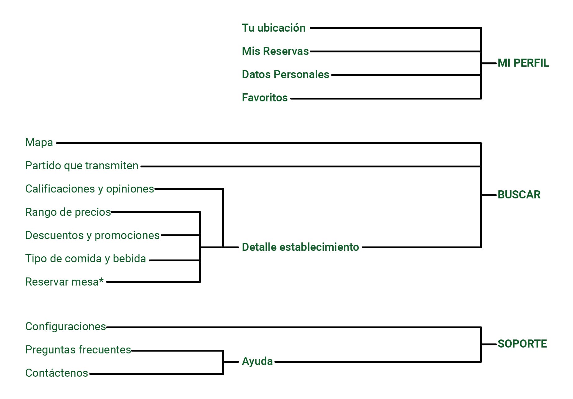 Una vez definida la arquitectura, se diseñó el userflow para la funcionalidad principal de la aplicación: reservar mesa en un establecimiento donde pasen el partido que el usuario busca ver.