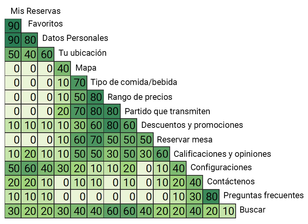 *“Reservar mesa” en la arquitectura final no fue incluida como parte de esta subcategoría, sino como una diferente, ya que si observamos los nombres de las categorías en las que esta tarjeta fue agrupada, hay una leve tendencia a colocarla dentro reservar.