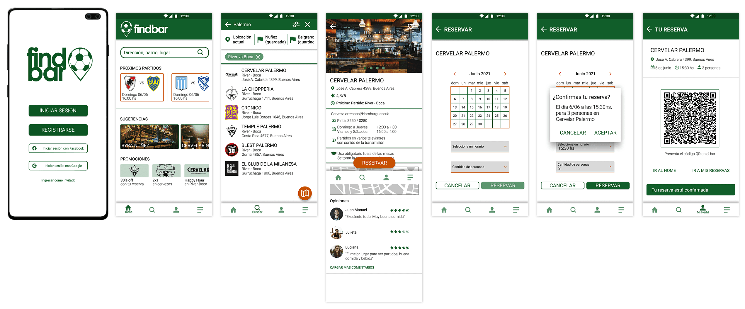 Es por ello que diseñé Findbar, una app que te permite buscar y reservar en bares o restaurantes donde transmiten partidos de fútbol.