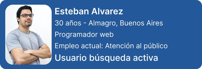 Al terminar el secundario, Esteban tuvo que salir a buscar trabajo para poder solventar la carrera de programación, fue pasando por diferentes empleos de atención al público. Logró recibirse, pero nunca consiguió un trabajo relacionado y lo fue dejando de lado. Hace un año, volvió a conectarse con su profesión, realizó varios cursos para actualizarse y está buscando un empleo como programador junior.
