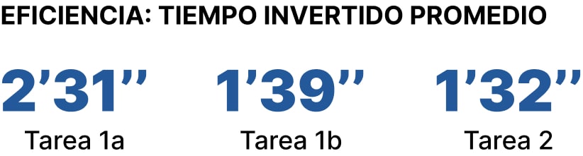 🟤 TU - La tarea de encontrar una oferta laboral acorde al perfil del usuario trainee o junior tuvo una eficacia del 20%, mientras que para Semi senior o Senior, del 40%. En cuanto a la eficiencia, el promedio de tiempo empleado para encontrar ofertas para Trainee o Junior fue de 2´31” y para Semi senior o Senior de 1´39”